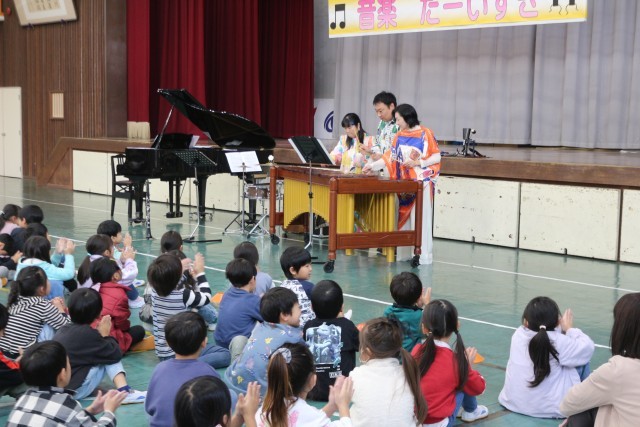 11月6日(木)3時間目に阿久比町好き好きミュージックさんによる「音楽だーいすき」を実施していただきました。子どもたちはマリンバ・クラリネット・ピアノの奏でる素敵な演奏に浸り、「芸術の秋」を堪能しました。演奏してくださった方、サポートしてくださった方、ありがとうございました。