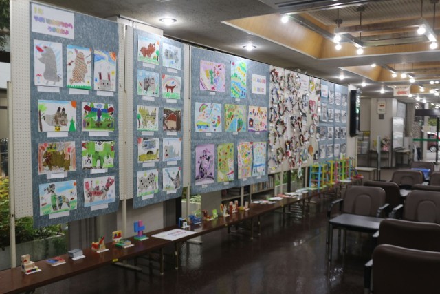 各学年が図画工作等の時間で制作した作品が阿久比町中央公民館1階ロビーに12月17日(水)まで展示されています。是非ご覧ください。