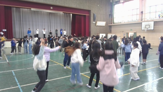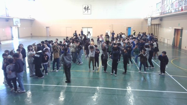 ハッピーデーの様子です。児童会の出題するクイズに答えて盛り上がりました。