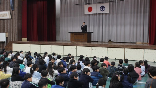 2学期の終業式の様子です。校長先生のお話や代表児童の作文発表を聞き、元気に校歌を歌いました。どの子もニコニコした笑顔で2学期を終えることができました。