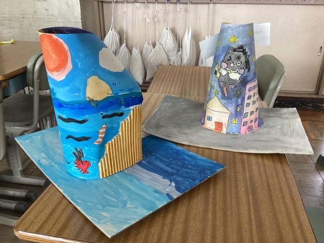 3年生が図工の授業で作成した作品を紹介します。創造力を働かせ、丁寧に作っています。