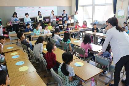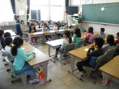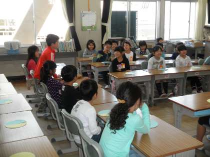 今日は、今年度初めて本校に赴任してきた職員に、「コミュニケーションタイム」をどう運営したらいいかを知ってもらうために、低・中・高学年の代表クラスに実施してもらい、その見学会を行いました。