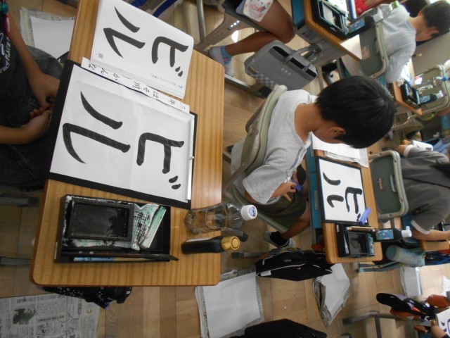 今年から始まった毛筆にも慣れてきて、始筆・終筆に気を付けながらゆっくりと筆を動かしていました。