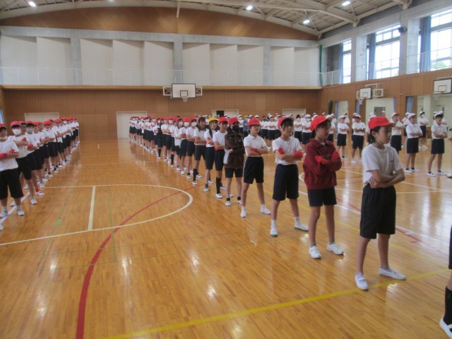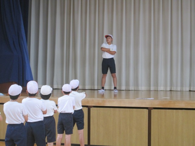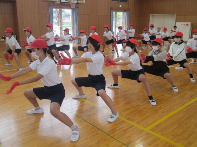 3時間目 運動会 学年種目「応援綱引き秋の陣」の演舞練習を行いました。