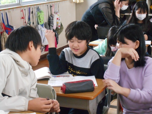 俳句や短歌が浮かばない児童は、周りの友達や先生と相談をしながら進めました。