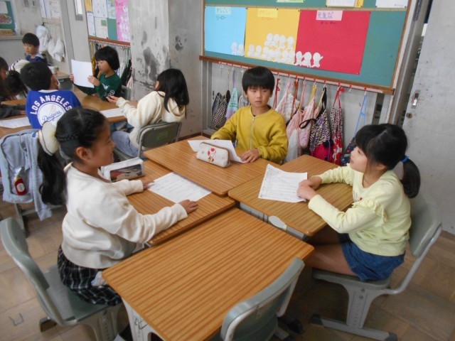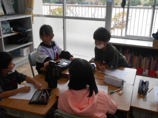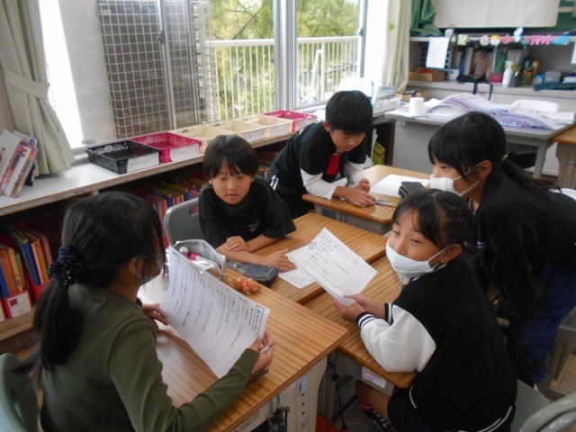 話し合いのルール表に沿って、話し合いを進め、グループの考えをまとめます。