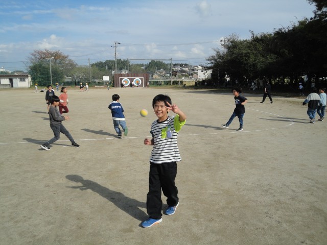 運動会が終わり,サッカーゴールが元の場所に戻されたことで,久々にサッカーに興じる様子が見られました。守備を引きつけ角度のあるシュートでネットを揺らしていました。さすがは,5年生です。