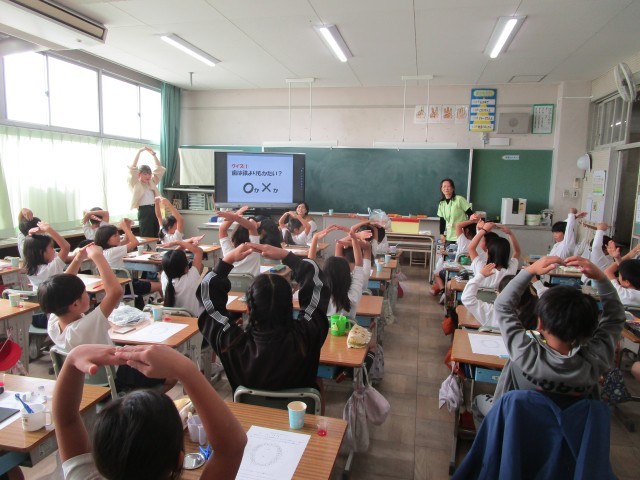 染め出しをして毎日の歯磨きを振り返り、歯の健康を保つ意識を高めました。