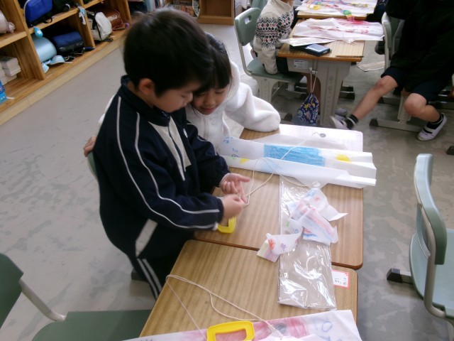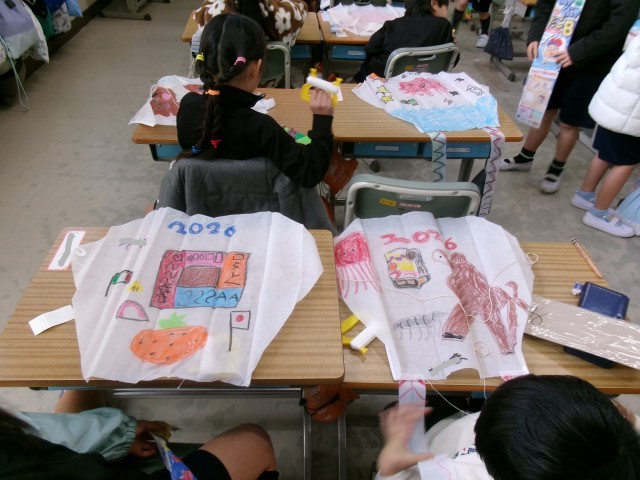 1時間目は、今まで制作してきた凧の最終調整を行いました。