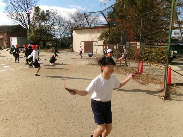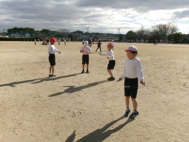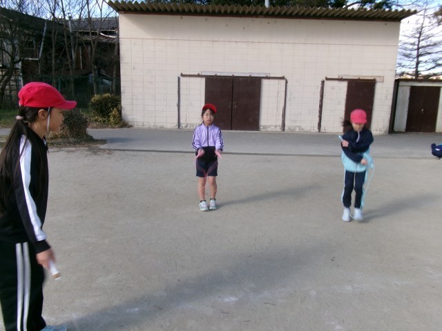 寒い中でしたが、楽しんでなわとびに取り組んでいました。