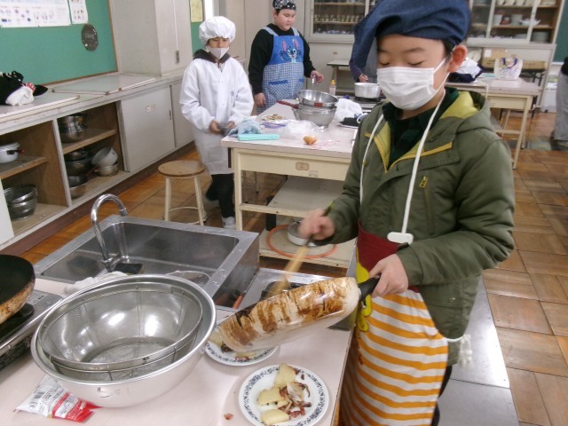 2月5日(木) 6年4組 3・4時間目の授業は家庭科「まかせてね 今日の食事」 でした。