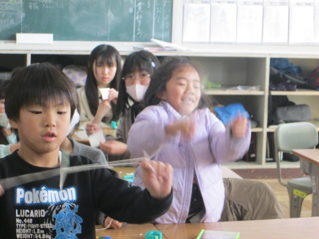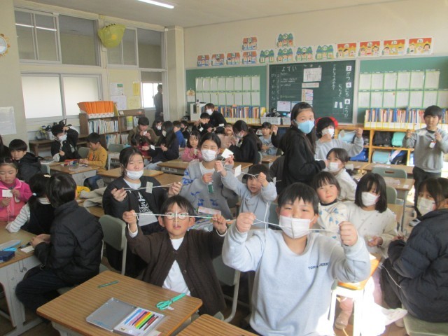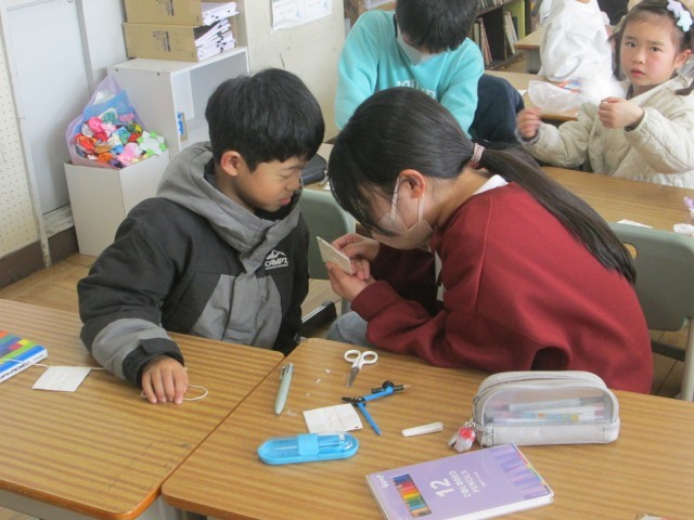 1年生と6年生でペアレクを行いました。今回のペアレクが最後となりました。最後のペアレクは、ブンブンゴマを一緒に作りました。6年生と1年生で協力してブンブンゴマを作り、コマ回しを楽しんでいました。