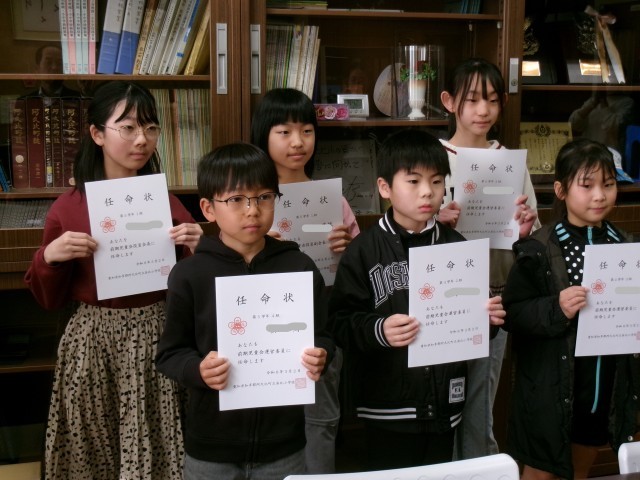 来年度前期児童会役員の任命式が朝会にて行われました。