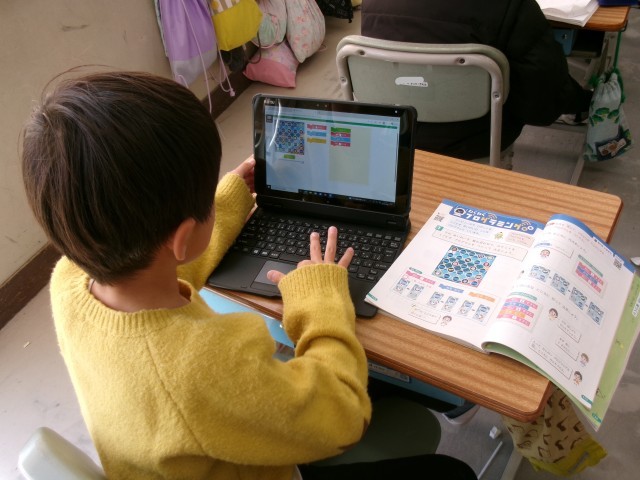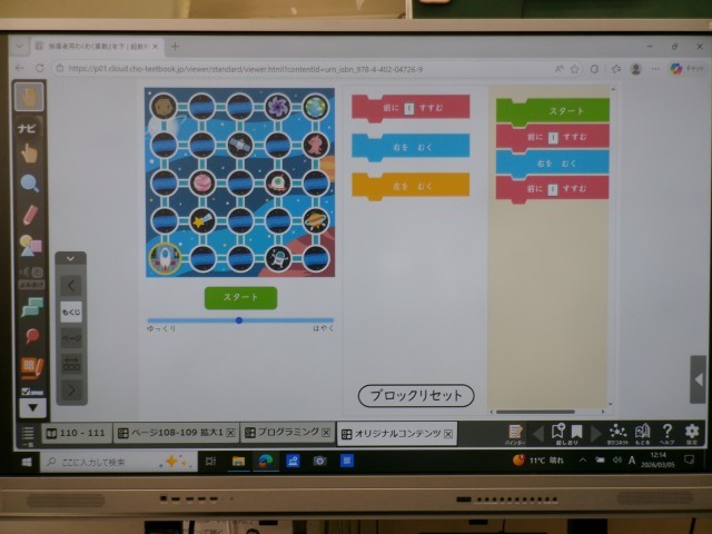 3月5日 2年1組4時間目の授業は算数「わくわく プログラミング」でした。