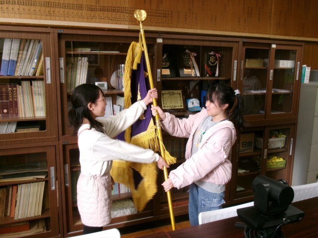 その後、学校旗を後期会長から来年度前期会長へ手渡しました。