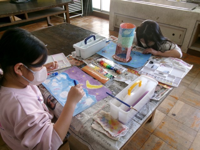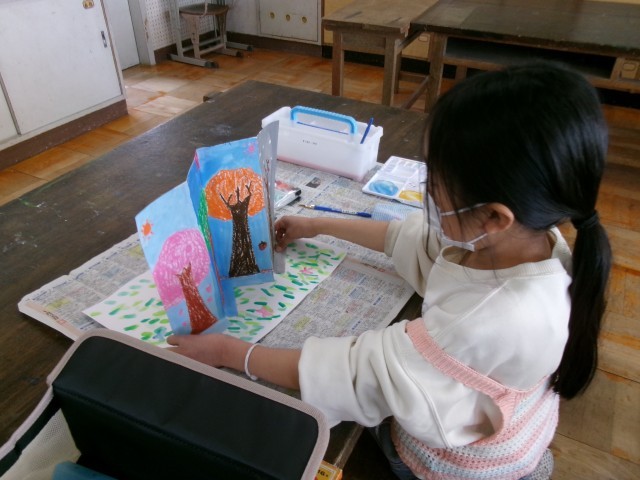 立体的に立ち上げる画用紙がそれぞれ工夫されていて、見ていて楽しい作品がたくさん出来上がっていました。