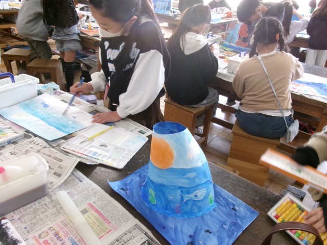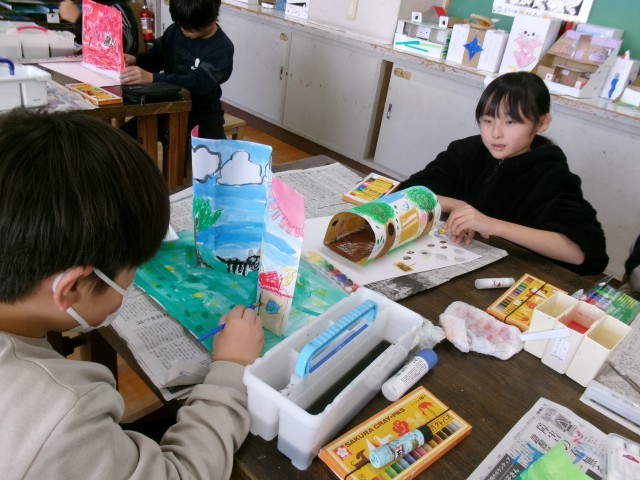 3月9日 3年2組3・4時間目の授業は、図工「立ち上がった絵の世界」でした。
