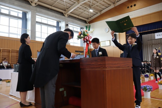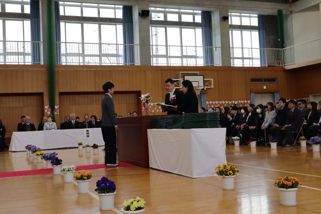 担任の呼名に,気持ちのよい「はいっ」が続きます。146名全員が証書を受け取りました。