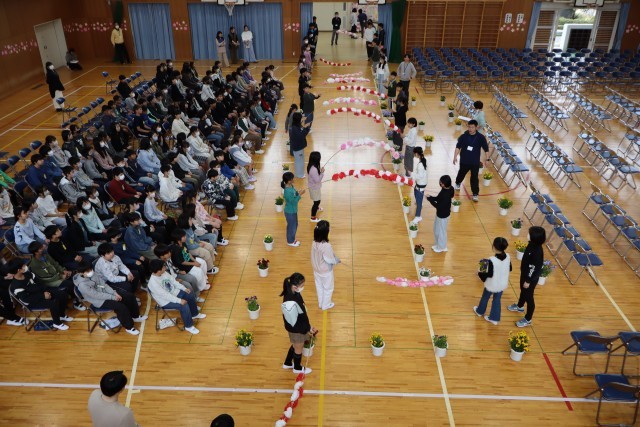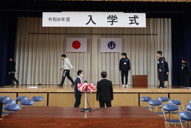 新入生,99名を迎えるため,昇降口や階段,1年フロア,式場などをピカピカに磨きました。清々しい働きぶりで,予定よりも早く準備を終え,入学式の流れの確認,校歌・国歌の練習をしました。