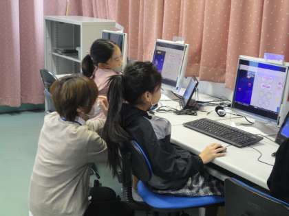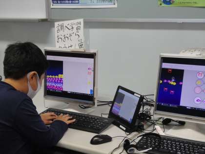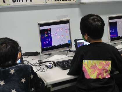プログラミングソフト「ビスケット」の基本的な操作方法を学習しました。「スクラッチ」は,様々な命令を組み合わせて,スプライトを動かしますが,「ビスケット」は,絵を配置したり,ずらしたりして,命令を発信します。感覚的に操作できるので,子どもたちも,お互いにアドバイスをしながら,操作することができました。