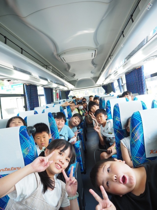 英比小学校を出発して、岡崎の野外教育センターに向かっています。元気に過ごしています。