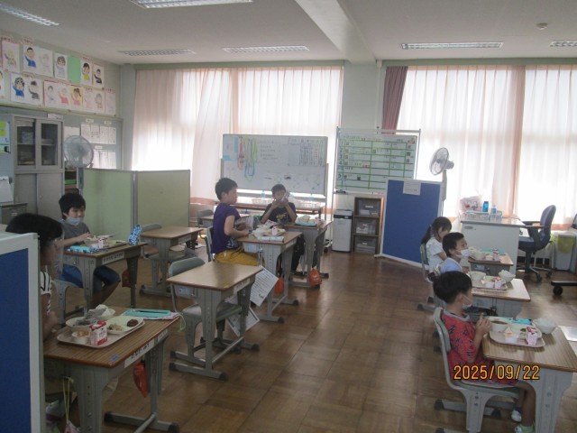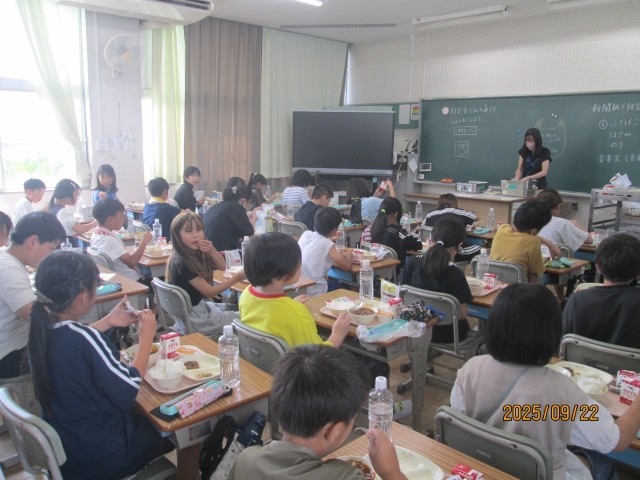 「本当に災害にあったら、お皿もスプーンもないところで食べなくてはならないよ。」「机も椅子もないかもしれないよ。」そう思うと今日の給食はとても有難いことですが、実際食べてみると「やっぱり給食のご飯の方がおいしいね」「袋から食べるのは大変だね」といつもの給食の有難さが身に染みているようでした。