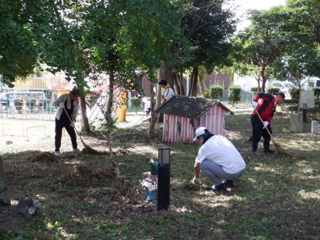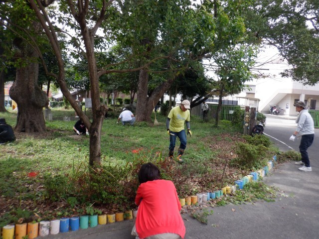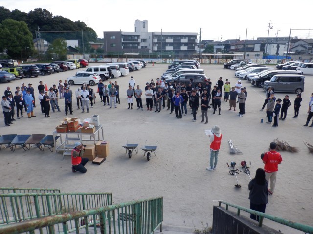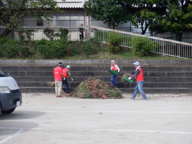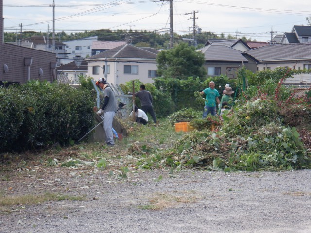 デンソーの社員の方々、草木小のPTA、教職員が参加して、草刈りをしました。