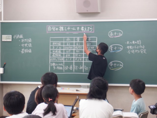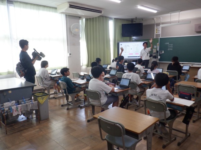 カメラに少し緊張しながら、班で話し合って、班ごとに答えをしっかり出していました。