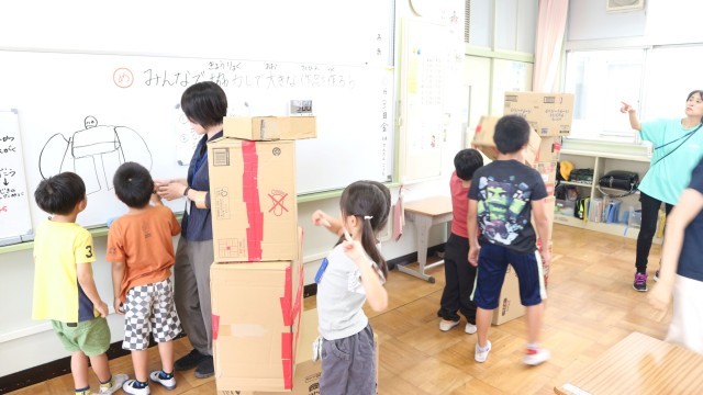 くすのきでは、11月の学校公開日にくすのきマーケットを開催する予定です。その準備をみんなで協力してがんばっています。今日は、段ボールを使って、みんなで作品を作りました。積んだり、並べたりして何に見えるか考えながら制作中です。まだ途中ですが、どんな作品になるのか楽しみです。
