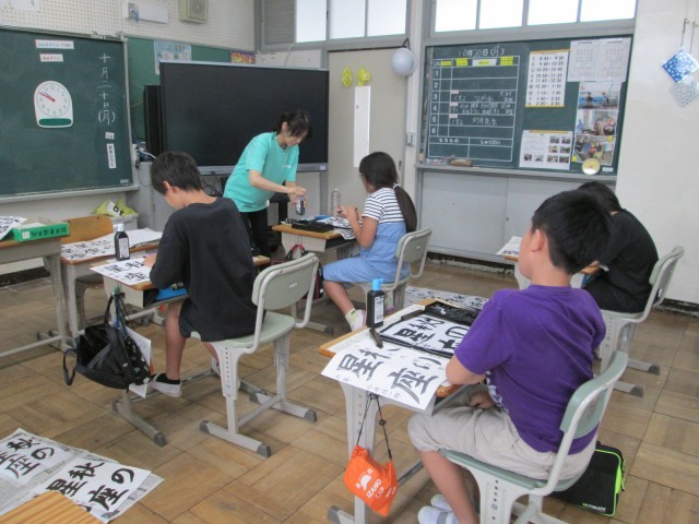 くすのきの5・6年生の児童は真剣に書写の授業に取り組んでいました。字の配列や筆づかいを確認した後、清書をしました。とても上手に書けていますね。