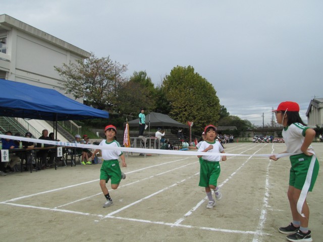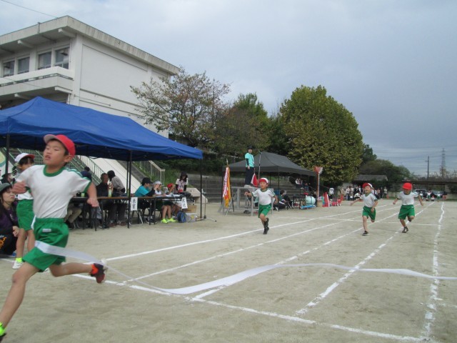1年生にとっては初めての徒競走でしたが、どの子もゴールに向かって一生懸命走ることができました。