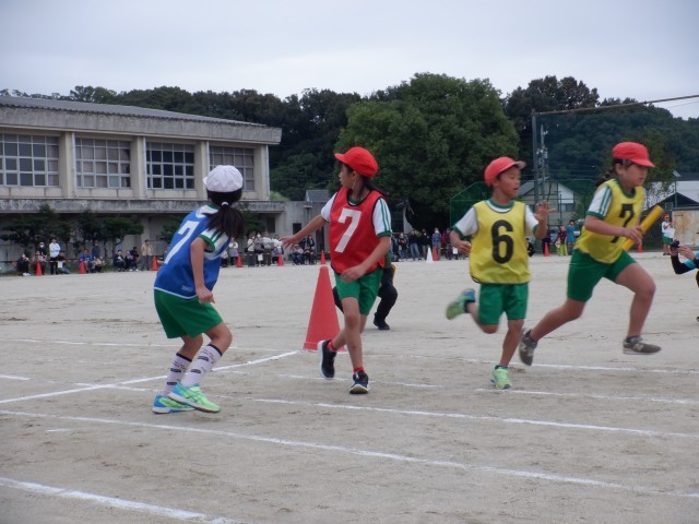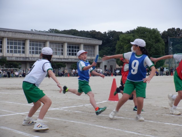 全学年のリレーの選手が、バトンをつないでいる姿に、子ども達の応援もとても盛り上がりました。