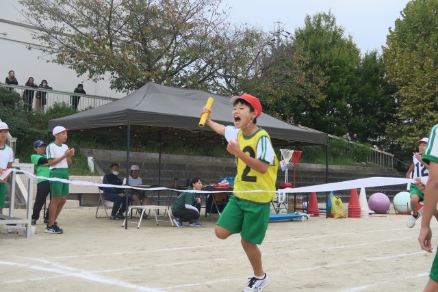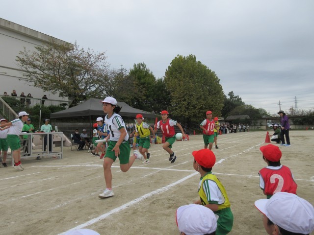 運動会最終種目では、赤白対抗リレーが行われました。