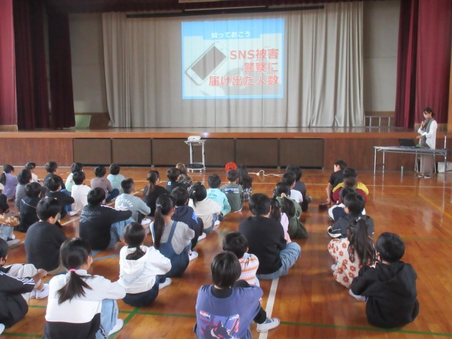 講師の先生をお招きし、3時間目は3・4年生を対象に、4時間目は5・6年生を対象に情報モラル教室を行いました。