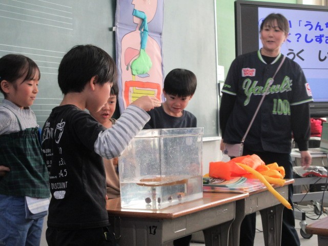 本日3、4時間目に愛知中央ヤクルトさんに「おなか元気教室」を行っていただきました。