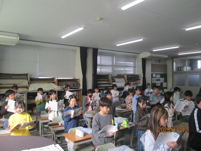 今日は4年生の音楽の授業で「もみじ」を歌いました。前回の授業で「ソーラン節の声とは違うね」「どう違うんだろう」と話し合いをしたので、今日は意識して歌うことができました。