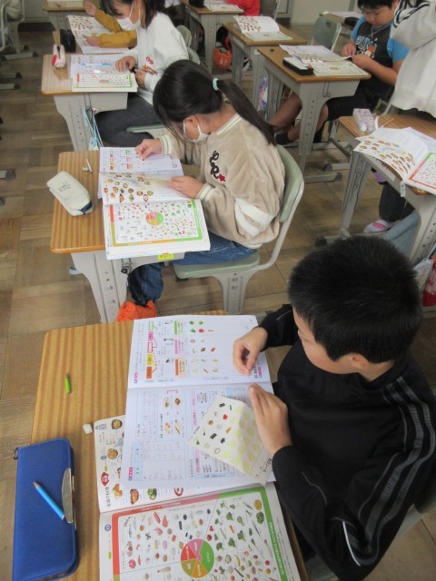 日頃の食生活やこれまでの経験を生かして、食材を五大栄養素に分類する活動に取り組んでいました。