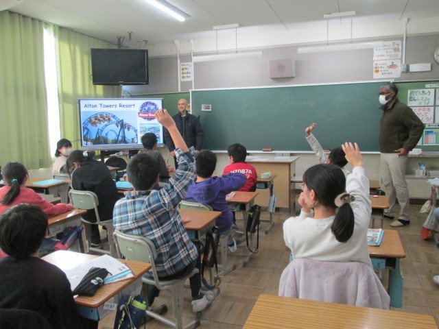 6年生の教室に、インタラックの方々が来てくださいました。イギリスとジャマイカについて紹介してもらいました。