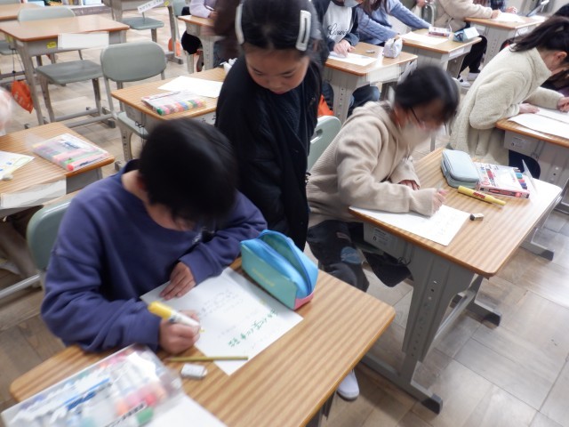 写真は、緑化・美化委員会です。3月に行われるキャンペーンに向けてポスターや点検表を作っていました。