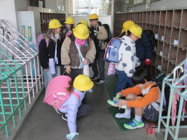 昇降口を覗いてみると、今日の学校での出来事や、帰ってからの予定などを話す子どもたちの姿がありました。