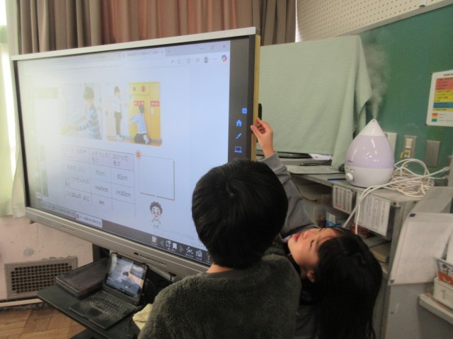 2年生の算数では、「100cmをこえる長さ」の単元で、いろいろなものや場所の長さを測る活動を行いました。