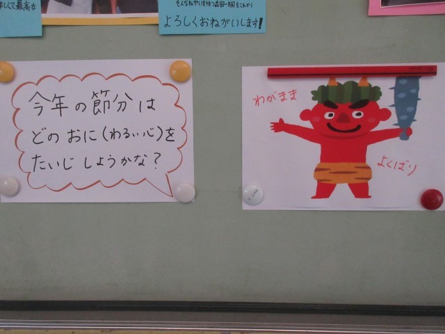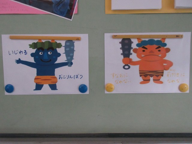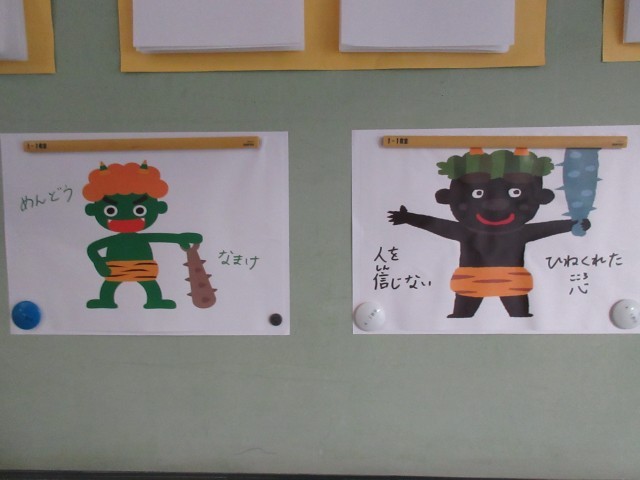 子どもたちは心から追い出したい鬼の色を考えていました。