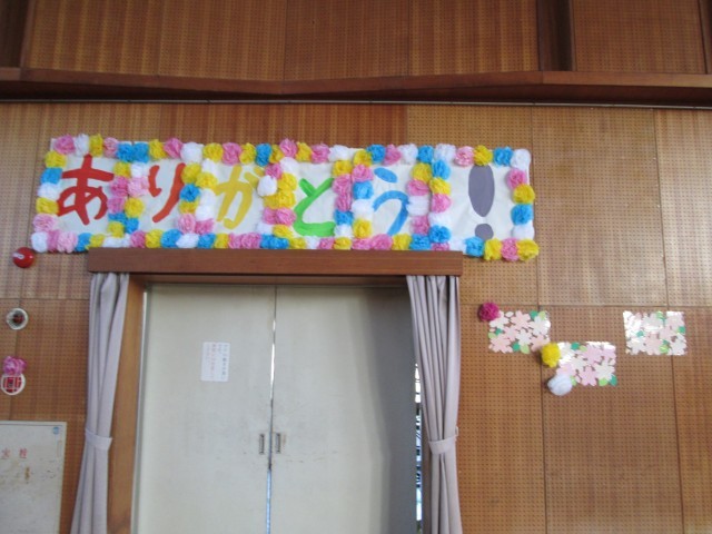 卒業式に向けて、3年生は花飾りを作りました。ていねに色塗りがされていて、お祝いの気持ちが伝わってきます。花束から可愛い花が飛び出す様子は、中学校に巣立つ6年生を表しているかのようです。また、5年生はお祝いの気持ちを伝えるプレートを作成しました。こどもたちの手で着々と卒業式の準備が進められていますね。