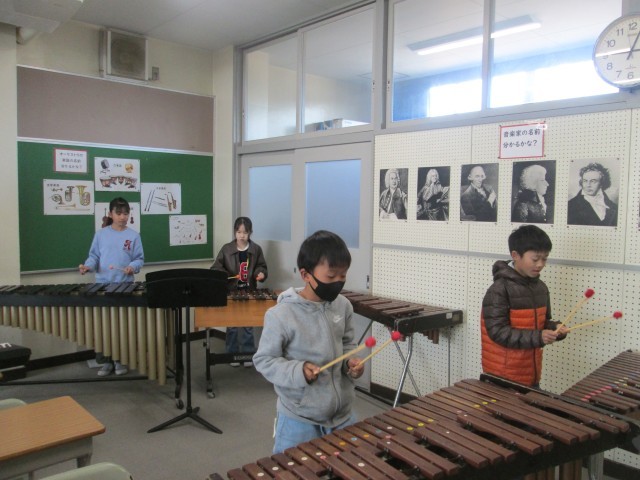 4年生が3学期の合奏の練習をしています。学期末に担任の先生を招待し発表会をします。「次回は司会者を決めないとね」「担任の先生以外にも招待していい?」など、子どもたちは楽しそうに話していました。素敵な会になるように一生懸命練習をしていました。