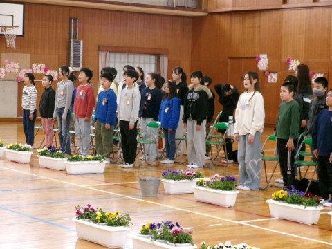 明日の入学式の準備のために、新6年生が登校してきました。体育館や1年生の教室を中心にきれいに掃除をし、心を込めて飾りつけをしてくれました。てきぱきと働く姿に、さすが最高学年だと感じました。