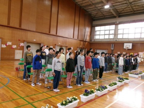 会場が整った後は、入学式のリハーサルを行いました。新入生を迎える準備はばっちりです。6年生のきれいな歌声に誘われてか、体育館の渡りに住んでいるツバメが、一足早く会場に入ってしまったので、明日までには退場してくれるといいです。