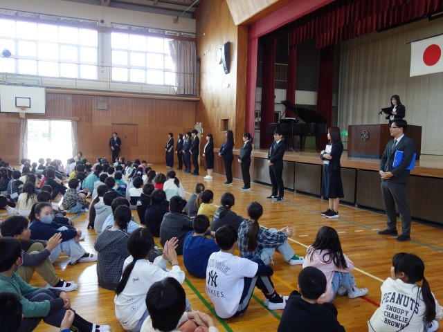 始業式のあとは、昨日入学した1年生との対面式を行いました