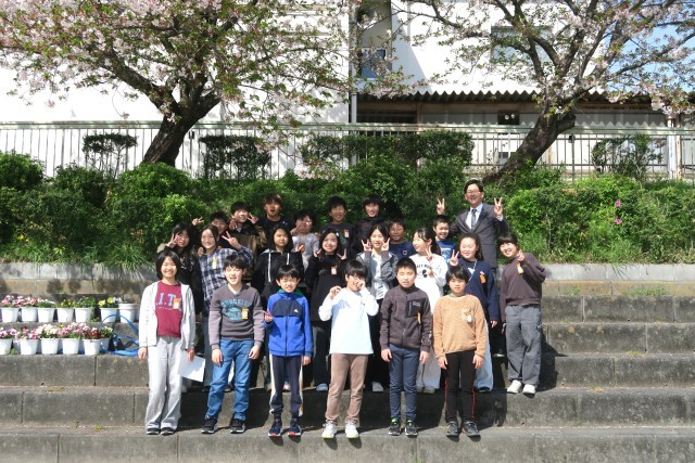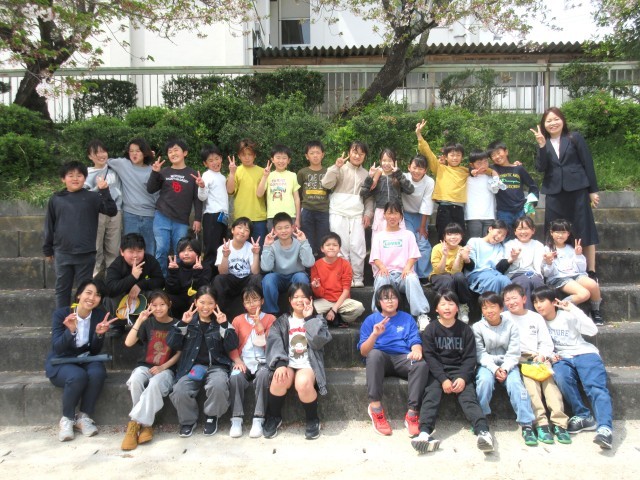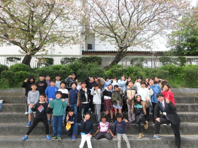 学級活動の時間に外に出て学級写真を撮りました。みんなやる気十分です。