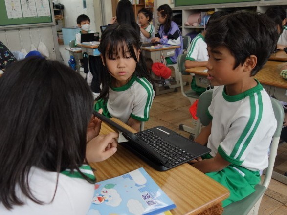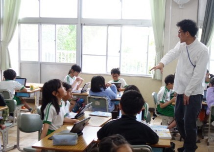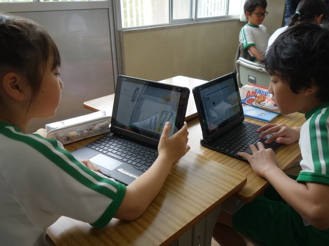 タブレット端末で同じ画面を共有しながら、グループで考えを出し合います