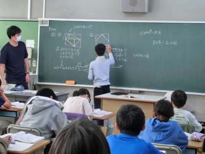 いろいろな求め方ができるようです。自分の求めた方法をみんなの前で発表していました。すごいなあ・・・